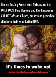 Our ancestors never had a source of water as abundant as the Nile and we never had the rich mineral filled waters like the Nile has, this is one of the reasons our ancestors were able to produce albinism in a high number of pregnancies this is the origin of the mutant species that led to the creation of the Neanderthal and to the Caucasian. The albino was first then the Neanderthal but during the evolution of that species it was able to grow into the different kinds of species that fueled the stories from antiquity!